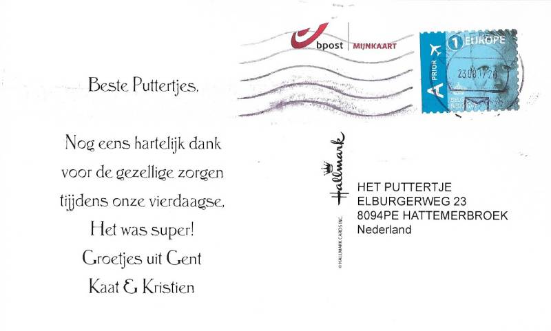 Van 2 Belgische gasten kreeg ik onlangs onderstaande kaart