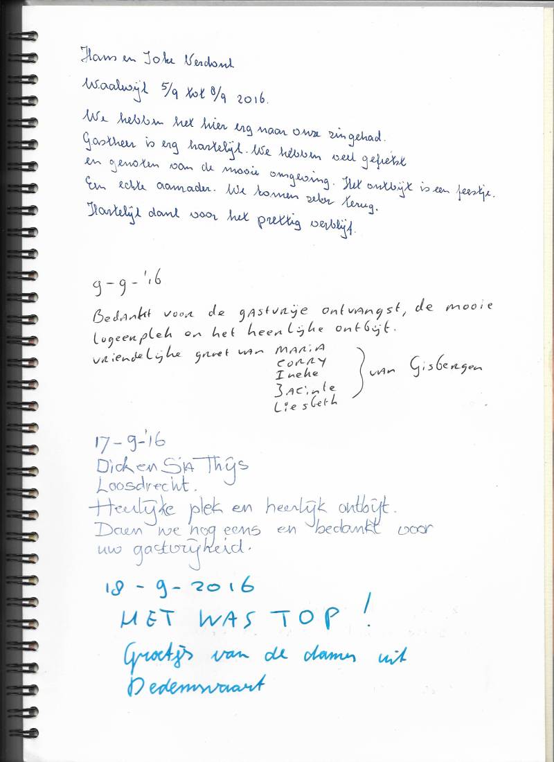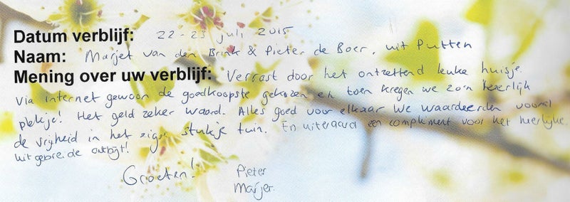 In Het Puttertje heb ik een gastenboek liggen waar de gasten iets in kunnen schrijven over Het Puttertje. Bijna iedereen doet dat ook. De strekking van die stukjes zijn allemaal hetzelfde. Een willekeurig aantal staan hier vermeld.